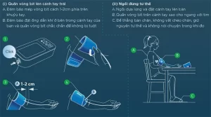 - Quấn vòng bít vào bắp tay trái (hoặc tay phải nếu bạn thuận tay trái), đảm bảo vòng bít ôm sát da nhưng không quá chặt. Vòng bít cách khuỷu tay khoảng 2-3cm.